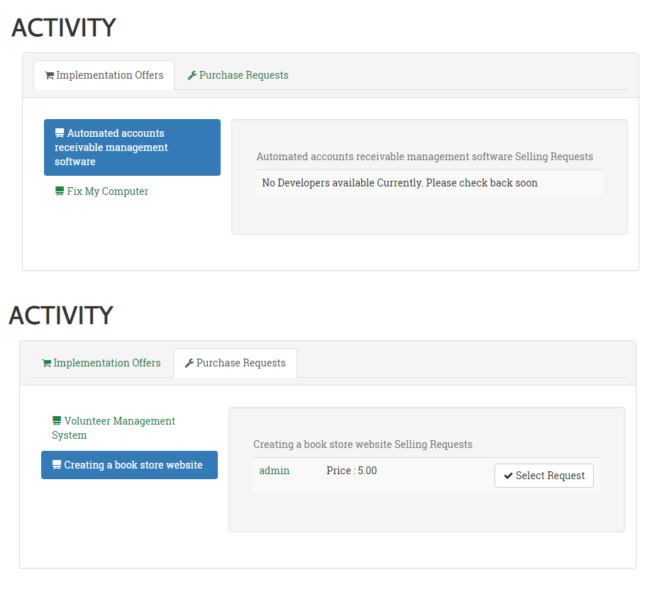 This level is introduced for software engineers, computing undergraduates (students), entrepreneurs or programming enthusiasts who are looking for inspiration. They can search ideas posted by level one users and they have the opportunity of searching most requested ideas and most recent projects. Some other search criteria would be by requested programming language, for requested platform, and by the operating system. These users will be allowed to claim and reserve the idea by immediately paying a pre-specified amount to the idea owner and hide the entry from the search index